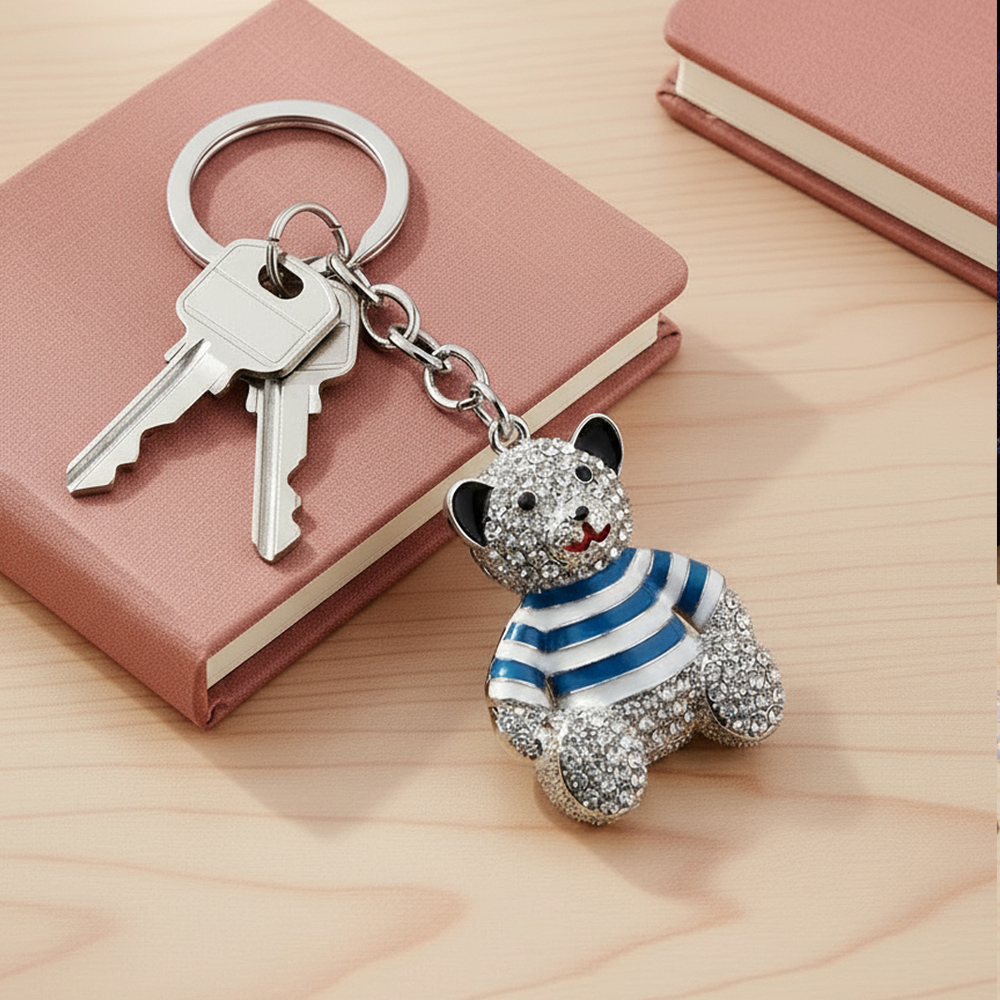 Q114136 Brelok SELLORI kryształki Miś misiek w koszulce w paski
