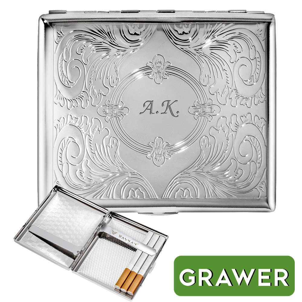 Szukasz niebanalnego prezentu siebie dla bliskiej osoby? Proponujemy elegancką papierośnicę z grawerem. W centralnej części wieczka ozdobionego wytłaczanym dekorem w stylu barokowym zupełnie za darmo, na życzenie wygrawerujemy wskazane przez Ciebie inicjały, imię lub datę. Taka papierośnica z grawerem zapakowana w okazałe pudełko upominkowe na pewno wywoła uśmiech na twarzy obdarowanego i za każdym razem gdy na nią spojrzy przypomni mu miłe chwile. Więcej informacji o produkcie znajdziesz w zakładce "Szczegóły" a o personalizacji w zakładce "Grawer".