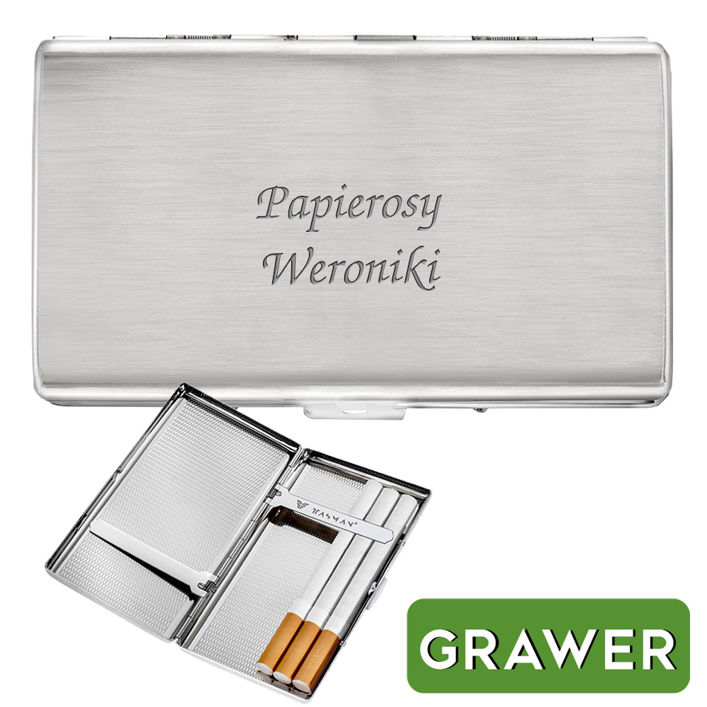 Szukasz niebanalnego prezentu który naprawdę ucieszy bliską Ci osobę? - papierośnica Tasman z indywidualnym grawerem to świetne rozwiązanie. Zaprojektuj swoją dedykację a my przygotujemy dla Ciebie piękny grawerunek wykonany frezem diamentowym metodą jubilerską. Wykonany napis jest trwały i bardzo elegancki (przykładowy grawer na ostatnim zdjęciu w galerii).