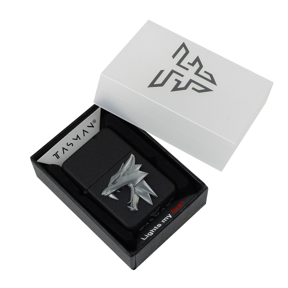Q310325 Zapalniczka benzynowa Tasman GŁOWA WILKA emblemat